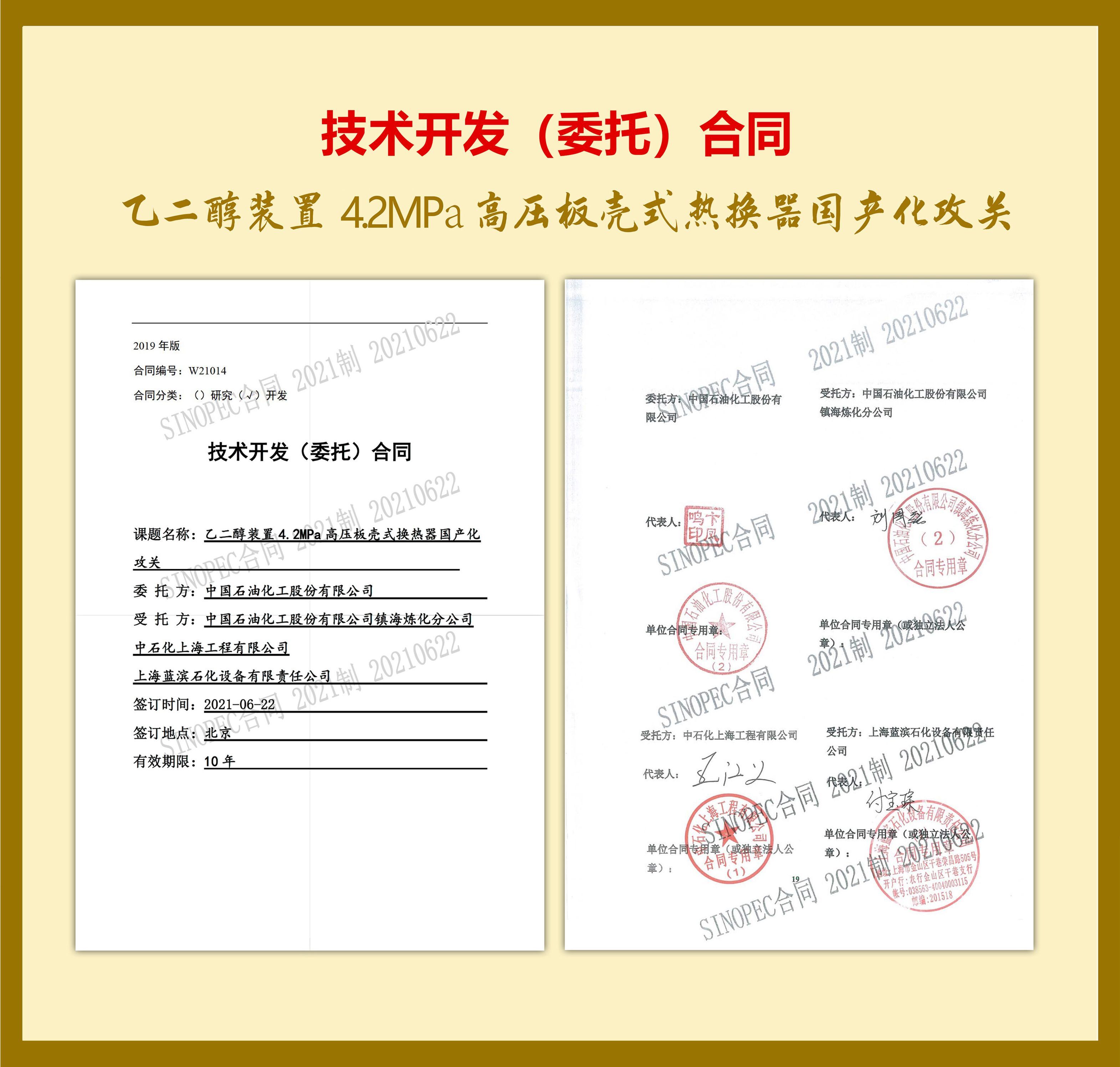乙二醇裝置 4.2MPa 高壓板殼式熱交換器國產化攻關(首臺套)中國石化重大裝備國產化攻關課題