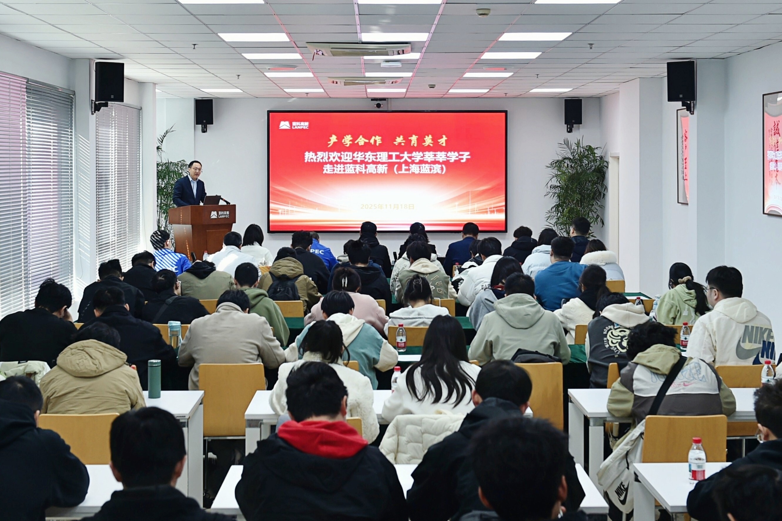11月18日,藍科高新在上海基地隆重舉行華東理工大過程裝備與控制專業學生畢業實習開班活動暨實踐教學基地揭牌儀式。華東理工大學機械與動力工程學院副院長陳建鈞,公司黨委副書記、紀委書記高巍,總工程師張玉福、總經理助理馬一鳴出席活動。活動由公司人力資源部(黨委組織部)總經理周李軍主持。