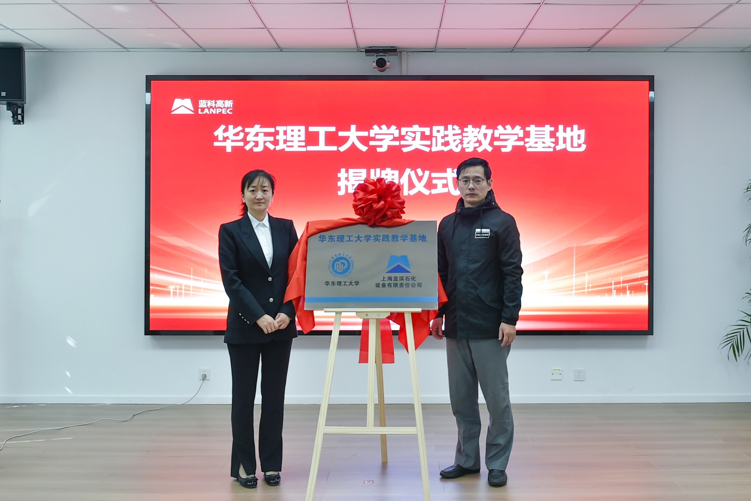 陳建鈞和高巍共同為“華東理工大學實踐教學基地”揭牌。